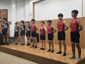 ユニフォームに身を包んだ姿がとてもかっこよく見えますね♪新部長(陸上部は今のところ、部長は順番に回しているようです)からは「それぞれが決めた目標を達成できるようにがんばる!」「少しでも多く勝って一人ひとりが自信をつけたい!」といった力強い決意表明がありました。