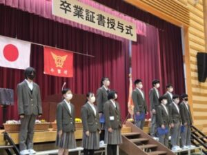 10日(火)は卒業式前日です。今日は全校生徒が揃って総練習が行われました。「礼のタイミングや動き」「マイク高さの調整」「来賓紹介の時の体の動き」などを確認した後に、卒業生入場からやってみます。(「総練習」と言ってもこれが全体集まって練習する唯一の機会です。小学校勤務が長い私にとっては「本当に大丈夫か?」と心配もありましたが…やはり中学生ってすごいものですね!それなりにできてしまい驚きました(^^;))