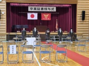「マイク高さは固定。あとは角度で調整」「別れの言葉の冊子は事前に机に置いておき、証書を重ねた後に持っていく」「別れの言葉の時には冊子をマイクの向こう側で持つことによりマイクとの距離が近くなる」「全校合唱の立ち位置の確認」といったことを最終確認。放課後には職員のリハーサルを行い、準備万端となります(^^)/明日は卒業生6人が気持ちよく卒業できるよう、みんなでお祝いしてあげられるといいですね(^o^)