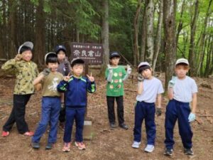 一週間遅れになりましたが、春の遠足に1,2年生、3,4年生で行ってきました。いずれも村内の山へ登山です。3,4年生は奈良倉山という標高1349mの山に登りました。
