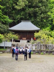 予定どおり最終地点、長作観音堂に到着しました。そして登山の成功のお礼をしました。故郷の山へ登り、故郷の自然や歴史を学ぶ。教室やタブレットでは出来ない素晴らしい学習ができた一日でした。源流大学の皆様、ガイドをしてくださりありがとうございました。このブログを作成したのは遠足翌日ですが筋肉痛です。翌日に筋肉痛になるのは、まだ若い証拠ですかね(笑)