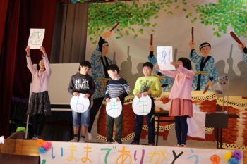 各学年,6年生に感謝の気持ちを伝えようと,劇やクイズ形式で発表を行いました。今までのエピソードや6年生一人一人に関係した問題を出すなど工夫を凝らした出し物となりました。6年生の表情を見ると,自分たちの成長を振り返りながらも,下級生の発表に楽しんでいる様子が伺えました。最後に6年生からも,自分たちの6年間の学校生活の歩みを,ユーモアたっぷりに演じてくれました。大勢の保護者も参加していただき,温かな雰囲気の中,会を終えることができました。会の最後には,児童会の引継ぎ式が行われ,来年度へむけてよりよい小菅小を創っていく決意を新たにしました。6年生の皆さん,卒業まであとわずか,最後まで下級生のみんなに本気の姿を見せてください。