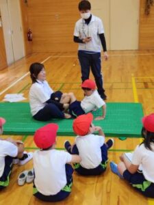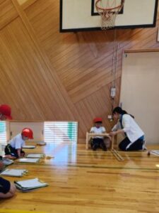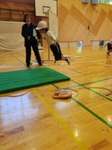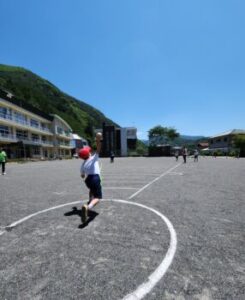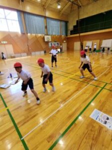 ソフトボール投げです。巧緻性(運動を調整する能力)・瞬発力をみます。いい投げ方です。この投力が,もう数十年前から低下しており,大きな課題となっています。しかし全国的には大谷グローブ効果でキャッチボールが見直され,投力が回復した子どももいるのでは……?