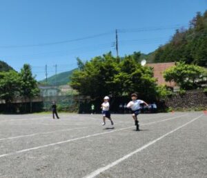 体力テストは毎年行われ体力の様子をみており,全国や県の結果は報道もされております。年々体力が落ちていることは,保護者の皆様もご承知のことだと思います。もっといえば,私たちですら先人に比べれば体力は落ちています。世の中が便利になればなった分,人間の体力も能力も落ちていきます。山梨県をはじめ全国的にも学校の統廃合が進み,通学が遠距離なり,その足はスクールバスへと変わってきています。歩くことが減った,それも体力低下のひとつだと言えます。余談ですが,都会の人は歩くのが速いですよね。車社会ではないので足が強いですよね。地方の人はかないません。