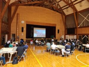 これに引き続き,村全体で村の子どもたちのことを考える『教育懇談会』が開かれました。私にとっては初めての会でしたが,正直驚きました。何に驚いたかというと,平日の夜なのに,幅広い年齢層から,そして役職に関係なく,小さな村からこんなにも大勢の方々が来て,真剣に討議してくださったことにです。お願いして来ていただく方もいれば,自主的に参加していただけた方も多く,驚きよりも感動でした!