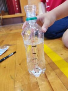 最後にペットボトルを使った簡易雨量計づくりに挑戦しました。時間が無かったのでグループで1個しか作ることができませんでしたが,全員キットを持ち帰りましたので,ご家庭で作り,雨の日に試してみてください。