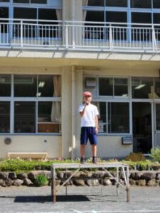 今日も暑い暑い一日でしたね。それでも1校時はまだよかったので,日陰やテント下を使い,初めての『小中色団結』なる練習が開かれました。簡単にいうと,結団式みたいなものです。