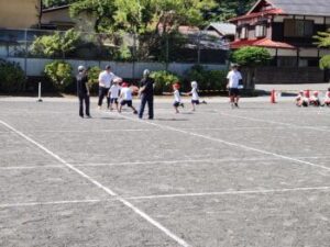 最後にリレーの走順確認と試走が行われました。小学校一年生から中学校三年生まで,成長を感じますね。バトンを落としたり,テイクオーバーゾーンの使い方ができなかったりと,これから練習のしがいがあります。赤も白も,とにかくバトンをつないでほしいなあと思います。