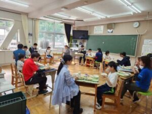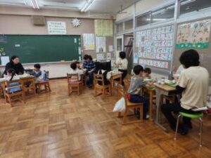 1・2年生です。いつもは11人ですが今日は一気に増えて,一番賑やかな教室でした。うれしいですよね。