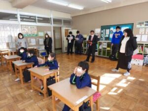 昨年の今頃は,「令和7年度の一年生の入学は0人」という悲しい状況下にありました。それが今や4人,一年がいるといないではずいぶんと違うものです。そんな一年生も小学校生活がはじまり7ヶ月が経ちました。しょっちゅうおじゃましていますが,今日はミニ授業研究会ということで,中学校からも大勢先生方が見学にきました。