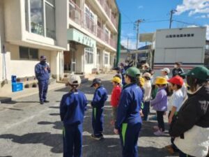 今日来てくださった防災センターの講師は、元消防士さんでした。小菅には初めて来たそうですが、子どもたちに大変わかりやすくご指導してくださいました。本当にありがとうございました。
