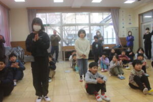 プレゼントは,『手作りプリンアラモード』です。このように書くとサンタさんたちが作ったようですが,すみません!給食のデザートをプレゼントとして一人一人に配らせていただきました。メリークリスマス!次回は節分で鬼が登場すると思います。