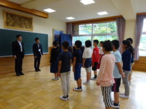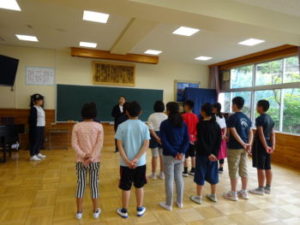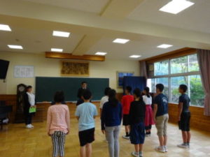 明日からの臨海学校に向けて結団式を行いました。みんなの心を一つにして、最高の臨海学校にしようという意欲を高めました。