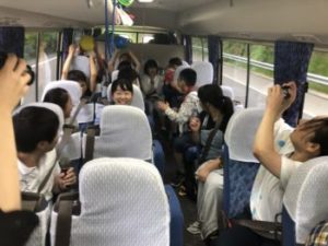 バスレクを楽しんでいます。高速道路は渋滞気味です。