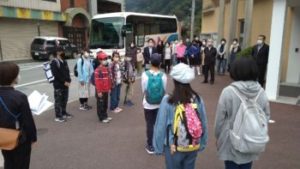 2020年10月07日 5年 6年 | 010月7日(水)、高学年(5年生6年生)は、修学旅行に出発しました。1日目の主な見学場所は、①登呂遺跡・登呂遺跡博物館、②駿府匠宿(昼食・体験)、③ふじのくに地球環境史ミュージアムでした。みんな笑顔で張り切っていますね。