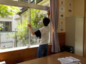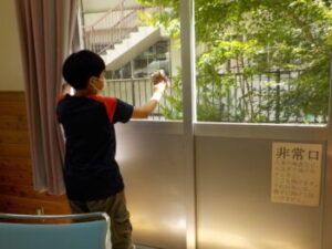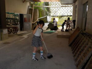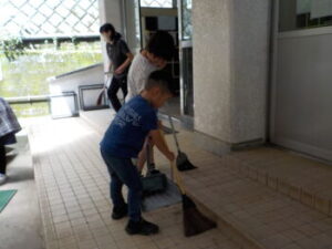 少ない人数で校舎内外をきれいに保つのは大変です。本校で普段から縦割りでの掃除をしていていますが、普段の掃除のほかに、こうした活動を入れながら、きれいな環境で生活できるよう工夫しています。