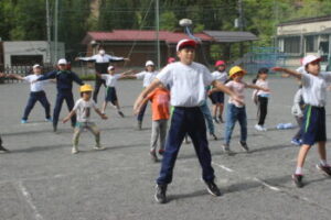 1年生も6年生の背中を見ながら一生懸命やっていました。