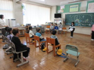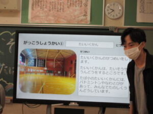 教室に入って、まずは始めの会。続いて、学校紹介をしてくれました。丹波小のこと、いろいろ詳しくなりました。