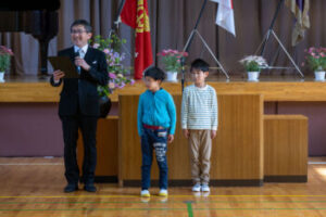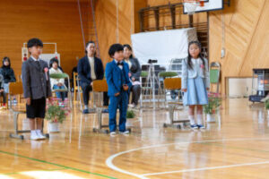 入学式の前には,転入生二人の紹介がありました。転入生が来てくれて,全校のみんなは大喜びです。しっかりと自己紹介ができました。