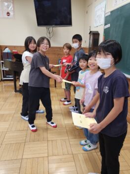 朝の活動や休み時間を利用して,全校みんなでの活動を企画しています。また,誕生日の仲間や先生のお祝いをします。児童会から,心のこもったメッセージカードの贈呈も行われます。