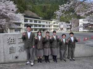 3年生は校門前でサクラと校舎をバックにパシャリ♪みんなとてもいい顔をしています♪令和7年度の小菅中を引っ張っていく3年生。大いに期待しています!