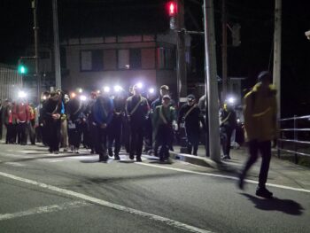 1日(木)の夜中(2日未明)には、巣鴨学園(東京)の大菩薩峠越え強歩大会が行われました。午前2時に小菅を出発し、大菩薩峠を越え最終的には塩山まで走る(歩く)大会に、中学生と高校生総勢約1400人が参加するとのことで、小菅小中管理職4人で出発の様子を見に行ってきました。真っ暗な中、ヘッドライトをつけ、リュックを背負った生徒がぞろぞろとやってきて、元気に峠に向かっていきました。全員通過するまで30分以上。すごい人数でした!