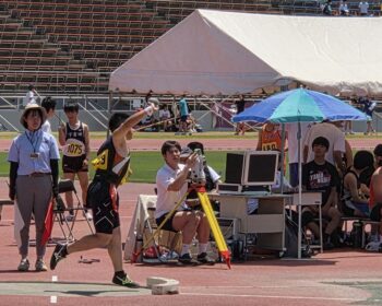 どの子もベストを尽くし精一杯がんばる姿はとてもかっこよかったです。感心したのは、競技終了後すぐに次を見据えていたこと。初めて100mに出場した2年生女子は自己ベストを記録し「これが200mにつながる」と言っていました。走り高跳びで155cmの自己ベストを出し8位入賞を果たした2年生男子は悔しそうな顔で「もう少し助走を長くして勢いをつける」と言っていました。一位に輝いた3年生男子も記録には納得しておらず、とても悔しそうな表情をしていました。現状に満足せず更なる高みを目指す姿に中学生のたくましさを感じました。