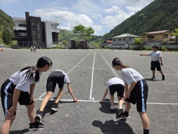 7日(水)4校時には、体育の授業に参加してきました。この日の体育は「50m走」と「ボール投げ」の計測。せっかくなので、私も一緒に計測させてもらいました。