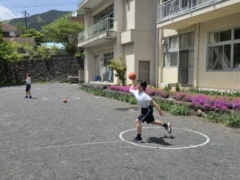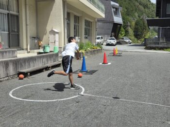 ボール投げは、中学生からはハンドボールになります。ソフトボールと比べ一回り大きくなるので投げるのも大変です。二人一組でキャッチボールをした後に、それぞれグループに分かれて計測。「行きます!」「オリャー!」元気いっぱい投げる姿は楽しそうでした♪私も投げてみましたが…もう少し飛ぶと思ったのですが…年齢を言い訳にせず、もう少し鍛えなければならないと痛感しました。