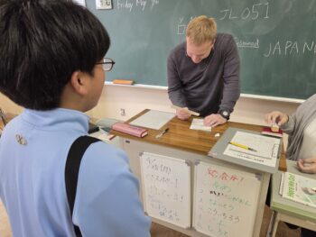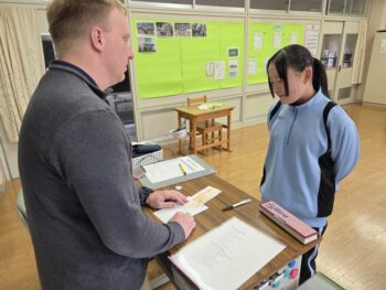 来週火曜日から修学旅行に出発する3年生。9日(金)には、入国カードの記入や入国審査の練習をしました。ALTからカードの記入について説明を受けますが…「えっ?なんて言った?」「大文字?小文字?」「スペルが分からない…」「住所はどれ?」等々大変でした。入国カードの記入が終わったら、入国審査の練習。一人ひとり入国審査官役のALTとやり取りをします。