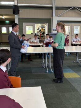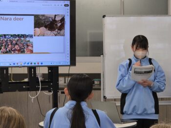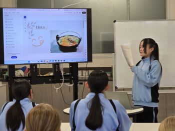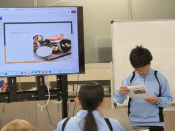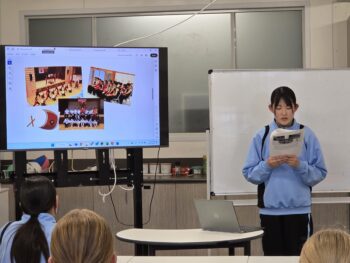 16日(金)午後に小菅中からのプレゼンということで発表と交流の時間をいただきました。発表は小菅中や村の紹介だけでなく、日本の食べ物や富士山の紹介等もAll Englishで行いました。少し緊張気味でしたが、大きな拍手をいただいて嬉しかったですね♪
