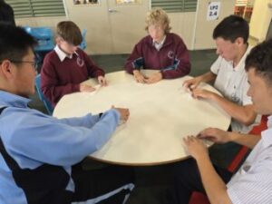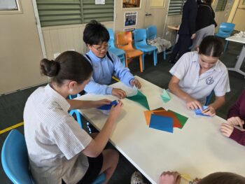 交流最後は折り紙。5つのグループに分かれてもらい、紙飛行機やツル、ハート等を折りました。折り方を言葉で説明するのは大変そうでしたが、身振り手振りで教えていました。紙飛行機は大人気でしたね😄今後学校中に紙飛行機が飛びまくってしまうのではないかと心配です。