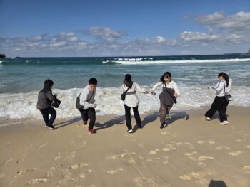 波打ち際で波と戯れていました♪若干一名、波を食らった子もいました💦下の写真で誰だか分かりますか?