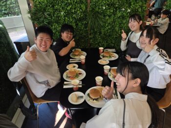 お昼ご飯はバーガー。想像以上に肉肉しいバーガーでした💦あまりの大きさに食べるのにひと苦労していました。