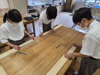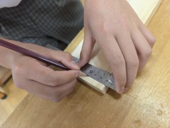 お互いのけがきをチェックすると…「おぉ~すごい!ぴったり!」「あれ?1mmズレてる!」「やり直し~」なかなか難しいものですね。「このくらいサラッとできてしまう大工さんってすごい!」と感心していました。