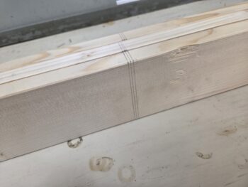 けがきで3本線を引くのは何故か知っていますか?それは「切りしろ」があるからだそうです。切りしろをつくらずに1本の線でだけで切ってしまうとのこぎりの厚みの分だけ寸法が短くなってしまうとのこと。なるほど納得です。
