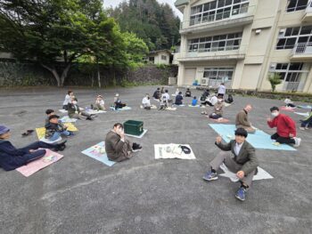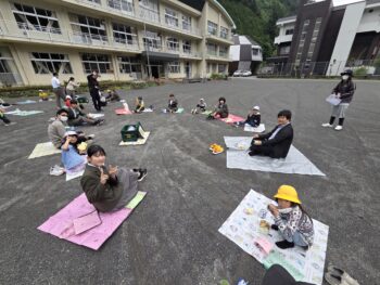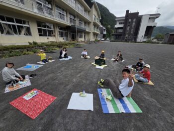 「さくらんぼ」「もも」「ぶどう」「かき」の4グループに分かれ、みんなで円になって食べました。朝方は雨が降っていましたが、無事にできてよかったですね。