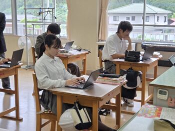 友達の発表を聞いた後には「よかったこと・真似したいこと」や「アドバイス」をそれぞれがタブレットに打ち込み、共有していました。打ち込んでいる様子を見ると一人ひとりの良さをたくさん書いていましたね。(それにしてもタイピングの速さには驚きです。)