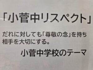 生徒にとって私たち教職員は、友達でも保護者でもありません。「教育的指導を行う大人」です。「好かれること」と「信頼されること」は違います。信頼とは、ぶれない姿勢、誠実な対応、そして生徒の成長を第一に考える姿勢から生まれるものです。生徒との関係が“ぬるく心地いいもの”になるのではなく、“時に厳しく、でも最後には支えになっている”そんな関係を目指して、今一度、私たちの在り方を見つめ直していけたらと思います。そこで大切になってくるのは相手への「リスペクト」だと思います。小菅中には「小菅中リスペクト」という言葉が校舎内に貼られています。教師も生徒もお互いに相手に対して「尊敬の念」を持ち、相手を大切にすることができれば、きっと「良好な関係」に近づくと思います。