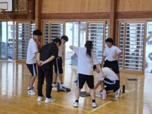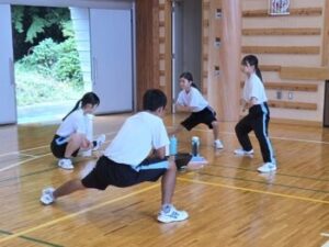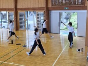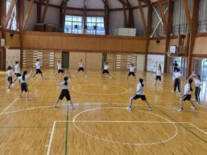最後はみんなで円になって踊りました。練習を終えた生徒からは「今日の練習で課題が見つかって良かった」「一つ一つの動作の確認をしたら、自分が勘違いしていたところも見つかって良かった」といった感想がありました。先生からは「動きの意味を教えてあげよう」「自分目線で気付いたことをどんどん教えてあげよう」「みんなで迫力のある、元気のあるソーラン節をつくりましょう」との言葉がありました。