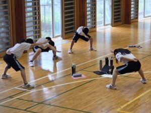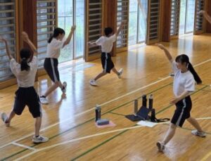 さて、今日は1校時に全校体育でソーラン節の練習がありました。ソーラン節は9月の明媚祭で披露することになっています。1年生にとっては初めてのソーラン節のため、上級生から教わります。今日は3グループに分かれて練習に取り組んでいました。昨年の動画を見ながら、ひたすら踊り続けるグループもあれば、言葉で一つ一つの動きを丁寧に教えるグループもあります。