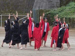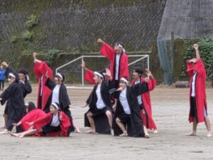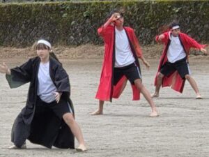 5日(日)には村民体育祭に参加してきました。スタートは雨が降っていましたが、中学生も様々な種目に参加して元気な姿を村の方々にお見せすることができて良かったです。このメンバーで舞う最後のソーラン節も披露してきました。カッコよかったですね(^^)