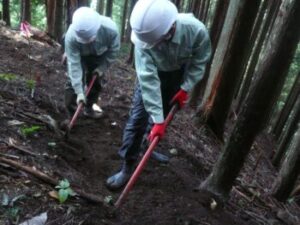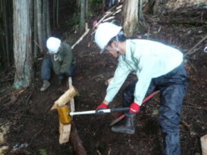 「舩木造林」。この日は山に入っての作業となりました。行った作業は「杭打ち」と「切土」。本人の感想には「少しキツいところもあるが、個々の信用や日々の確認で個人の安全や山の豊かさが守られていると思いました。山の道を見て自分がこなしたところが歩きやすくやりがいも感じました。」とありました。いいですね♪こういった若者がいれば小菅の豊かな山も安泰ですね(^^)