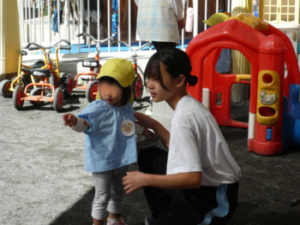 「保育所」。この日は小さい子たちを担当したようです。朝登園してきた子の面倒を見たり読み聞かせをしたりおやつの時間の面倒を見たり外遊びをしたり…お昼寝の寝かしつけもしたようです。本人の感想には「保育士の大変さを実際に体験して知ることができたし、同時に保育士の楽しさも知ることができたのでとても良い経験になりました」と書かれていました。写真を見るとそっと手を添える優しさがいい感じです(^^)