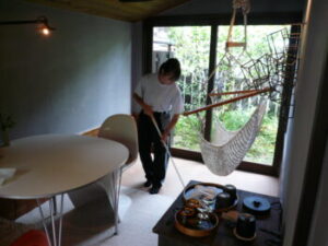 「NIPPONIA」。ホテルの紹介をしていただいた後にホテルの掃除や「崖の家」の最終チェック、お客様のチェックインまで経験したようです。本人の感想には「チェックインの時からチェックアウトまで本当に細かくおもてなしの心で対応していることを学びました。」とありました。保育所とホテル。どっちの仕事も人を大切にしているということですね。おそらくこれはどの仕事に関しても言えるのではないでしょうか。いい経験をしましたね(^^)
