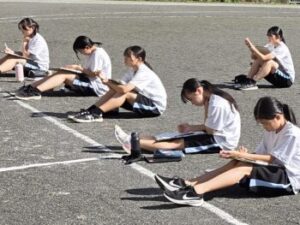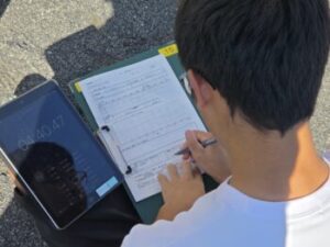 走り終えた子から脈拍をはかり、ワークシートに今日のラップタイム、本日の反省、課題を書き込んでいきます。「今日の走りは納得できない」「前の記録と比べるとメッチャ速くなってる!」「最初に飛ばしすぎると後半がもたないから注意しないと!」こうした積み重ねが大事です。