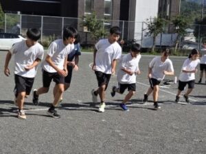 周りの子たちからたくさんの声がかかります。「24秒!ペース保ってるよ!」「あと5周!」「いいよ!いいよ!」「ちょっと落ちてます!あげていきましょう!」「ちょっと遅れたけどいいペースだよ!」「あとちょっと腕を振ろうか!」「ラスト!」「呼吸意識して!」など。まあ途切れることなく声がかかっていました。またトラック内をウロウロしながら=その子の近くに寄りながら声をかけている姿が目立ちましたね。これは大きな励みになったはず。強歩大会当日はそうやって声をかけてくれるペアの子がいません。あくまでも自分の戦いとなります!がんばれ!