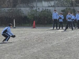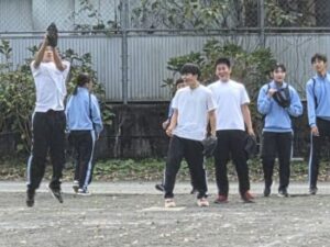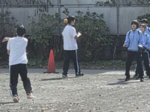 29日(水)は体育の様子をお伝えします。強歩大会を終え、ここからはソフトボールに入るようです。3,4人組で楽しくキャッチボールをしているかと思っていたら、しばらくすると守備練習が始まりました。