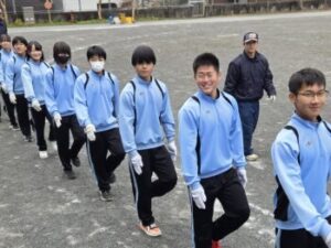さて、小菅には「少年消防隊」があります。「小菅村郷土小誌」によると「昭和28年12月「少年消防隊」が結成され、中学生による村内の火災予防活動が行われた。各家庭においての火気取り扱いについての注意を喚起した」「昭和29年1月、消防団で行った消防で出初め式に少年消防隊として初めて参加した」と書いてありました。平成7年には「優良少年消防クラブ」としての表彰も受けています。現在,少年消防隊としての活動はこの出初め式への参加がメインとなっているようですが、3日(水)には大月消防本部の方を招いて練習会が行われました。