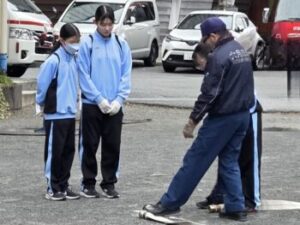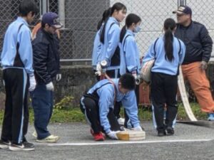 行進に続いて消火栓操法の練習。それぞれの役割分担で教えていただきました。これはなかなか難しそうでした。ただ単にホースを繋いで放水という訳ではなく、指揮者から号令がかかります。それぞれの役割でかけ声や動きが決められています。これを覚えるだけでも大変です!12月にあと2回練習をし、1月11日(日)が本番です。
